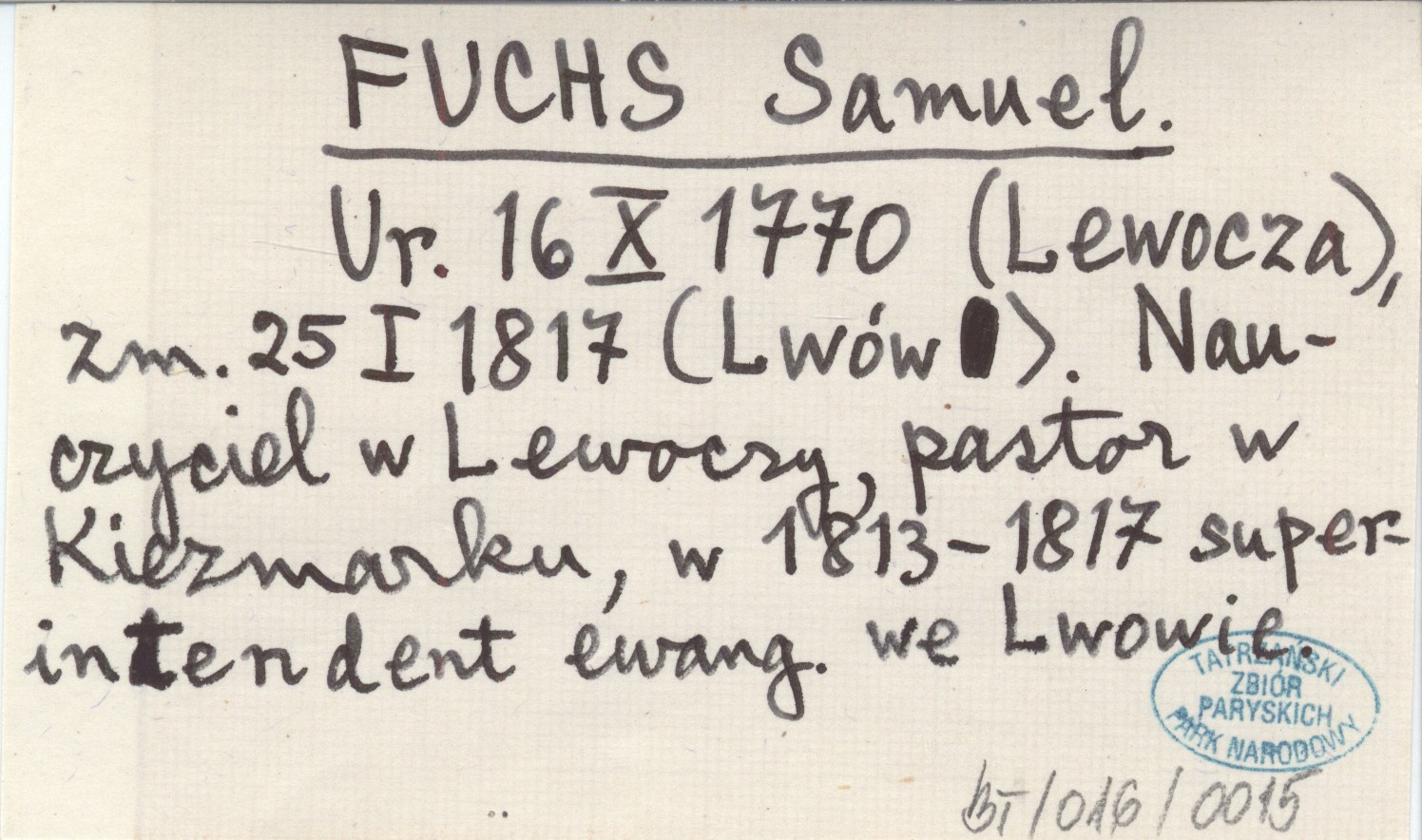 Ur. 16 X 1770 (Lewocza), zm. 25 I 1817 (Lwów). Nauczyciel w Lewoczy, pastor w Kiezmarku, w 1813-1817 superintendent ewang. we Lwowie.