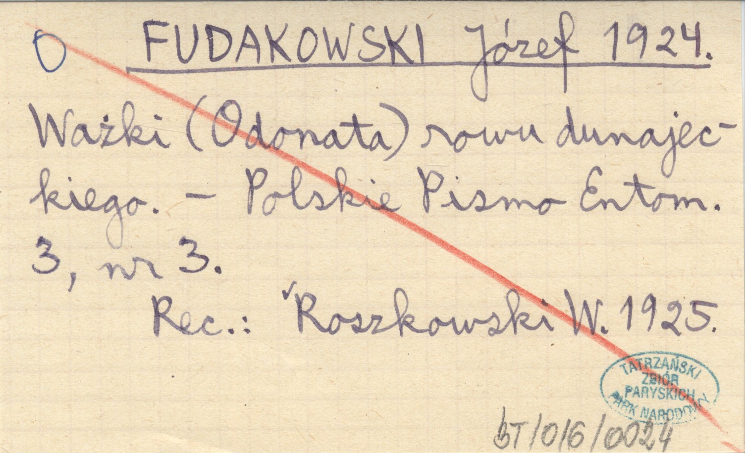Polskie Pismo Entomologiczne, 3, nr 3. REC: ROSZKOWSKI W. 1925