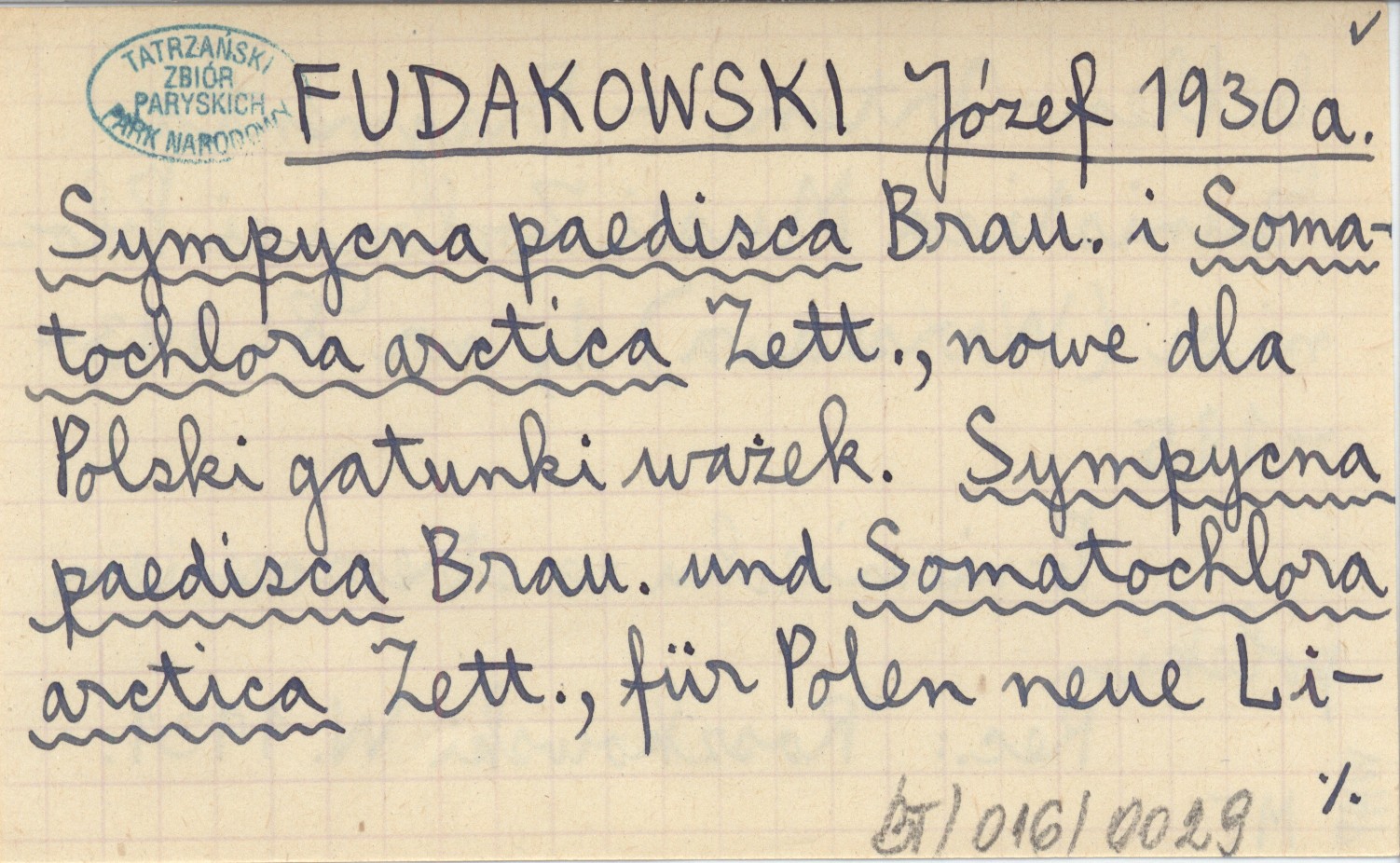 FUDAKOWSKI Józef 1930 a Sympycna paedisca Brau. i Somatochlora arctica Zett., nowe dla Polski gatunki ważek. Sympycna paedisca Brau. und Somatochlora arctica Zett., für Polen neue Libellen-Arten.