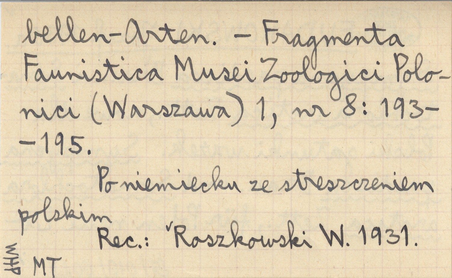 Fragmenta Faunistica Musei Zoologici Polonici (Warszawa) , 1, nr 8: 193-195. Po niemiecku ze streszczeniem polskim. REC: ROSZKOWSKI W. 1931