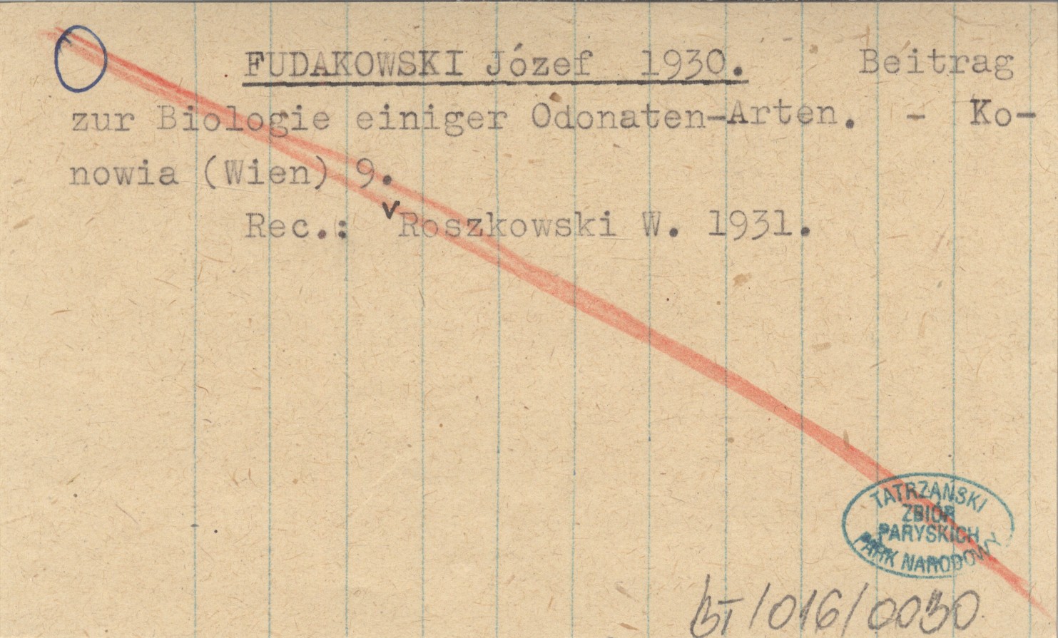 FUDAKOWSKI Józef 1930 Beitrag zur Biologie einiger Odonaten-Arten.