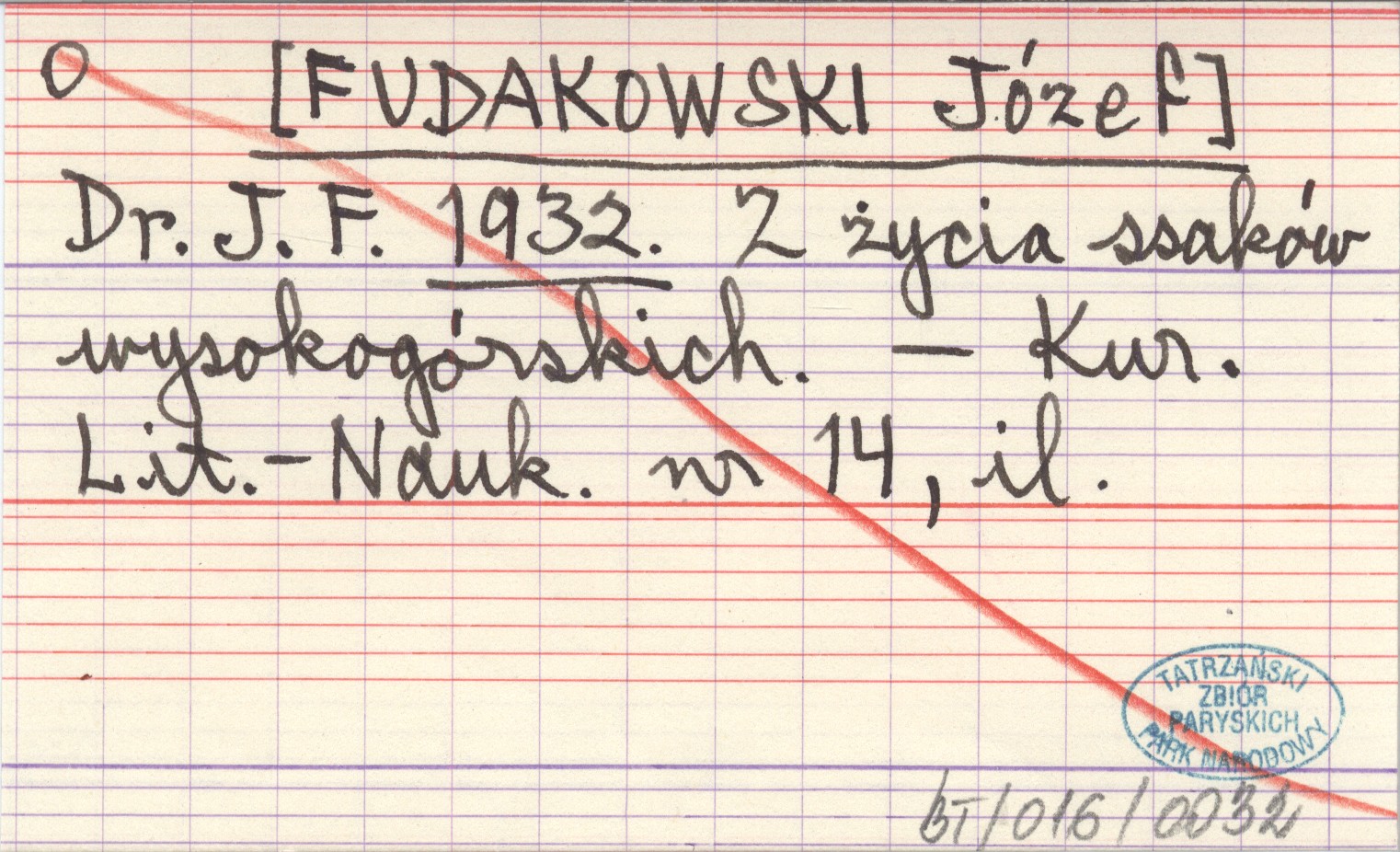 Dr. J. F. [FUDAKOWSKI Józef] 1932 Z życia ssaków wysokogórskich.