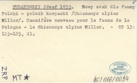 FUDAKOWSKI Józef 1933 Nowy ssak dla fauny Polski - polnik karpacki (Chionomys ulpius Miller). Mammifére nouveau pour la faune de la Pologne - le Chionomys ulpius Miller.