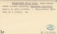 FUDAKOWSKI Józef 1954 Nowe stanowisko traszki górskiej (Triturus alpestris Laur.) na niżu polskim.