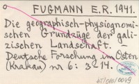 FUGMANN E. R. 1941 Die geographisch-physiognomischen Grundzüge der galizischen Landschaft.