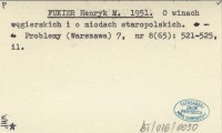 FUKIER Henryk M. 1951 O winach węgierskich i o miodach staropolskich.