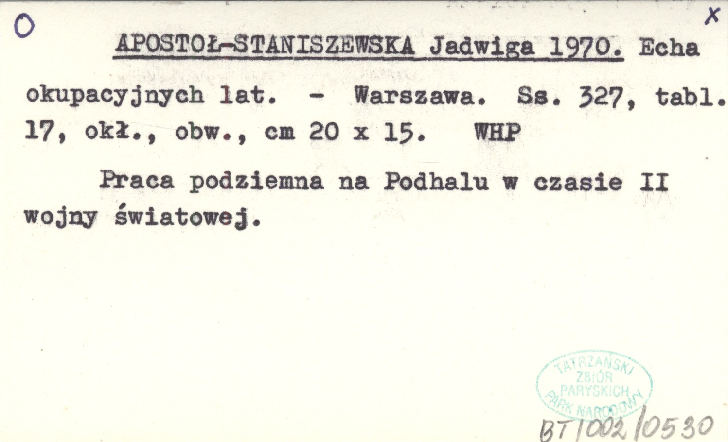 APOSTOŁ-STANISZEWSKA Jadwiga 1970 Echa okupacyjnych lat.
