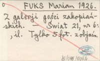 FUKS Marian 1926 Z galerji gości zakopiańskich.