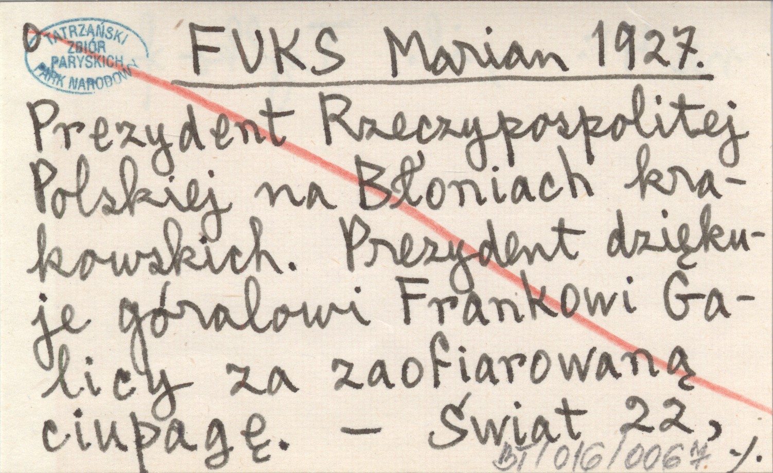 FUKS Marian 1927 Prezydent Rzeczypospolitej Polskiej na Błoniach krakowskich. Prezydent dziękuje góralowi Frankowi Galicy za zaofiarowaną ciupagę.