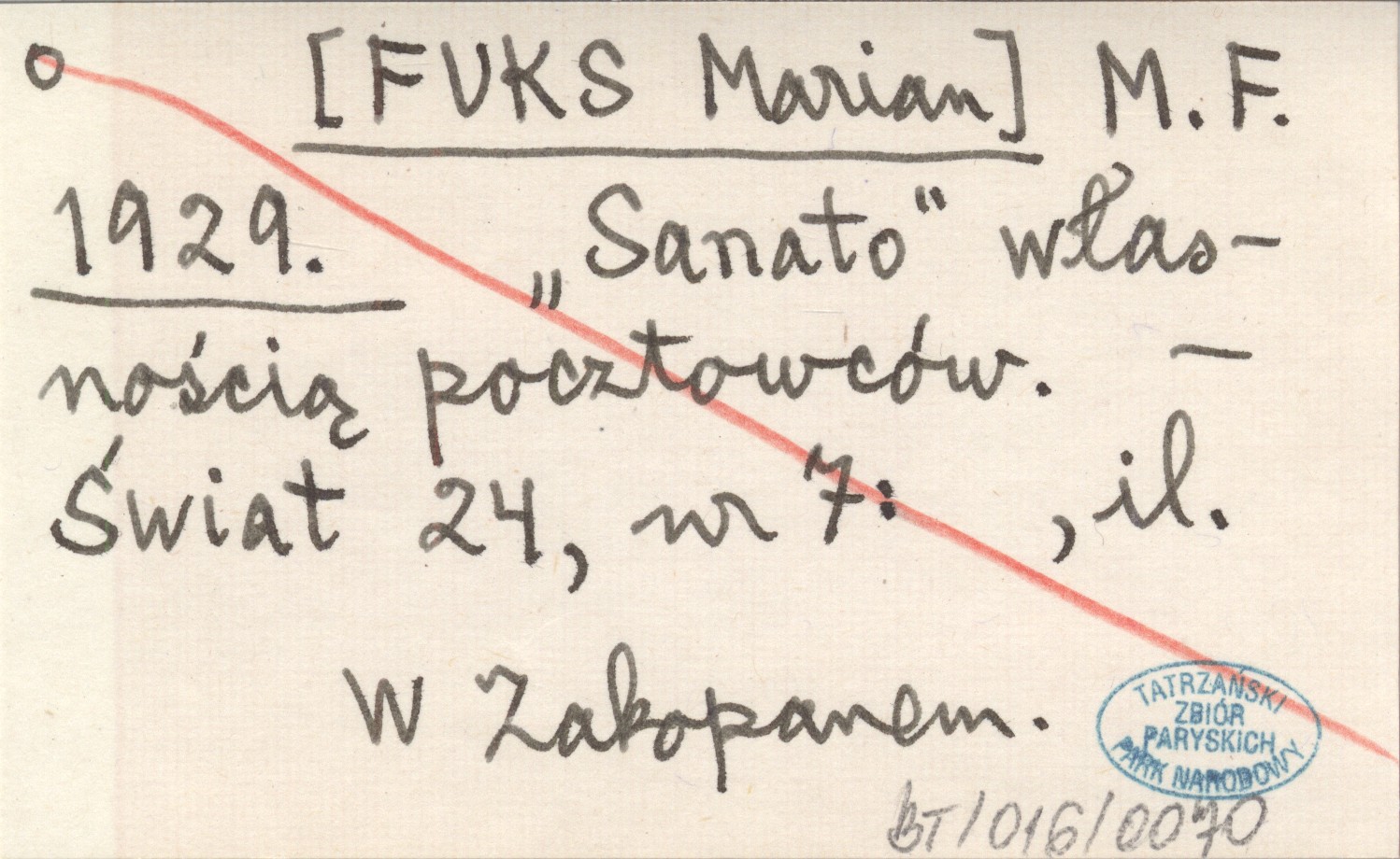 M. F. [FUKS Marian] 1929 "Sanato" własnością pocztowców.