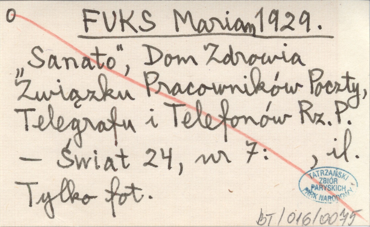 FUKS Marian 1929 "Sanato", Dom Zdrowia Związku Pracowników Poczty, Telegrafu i Telefonów Rz. P.
