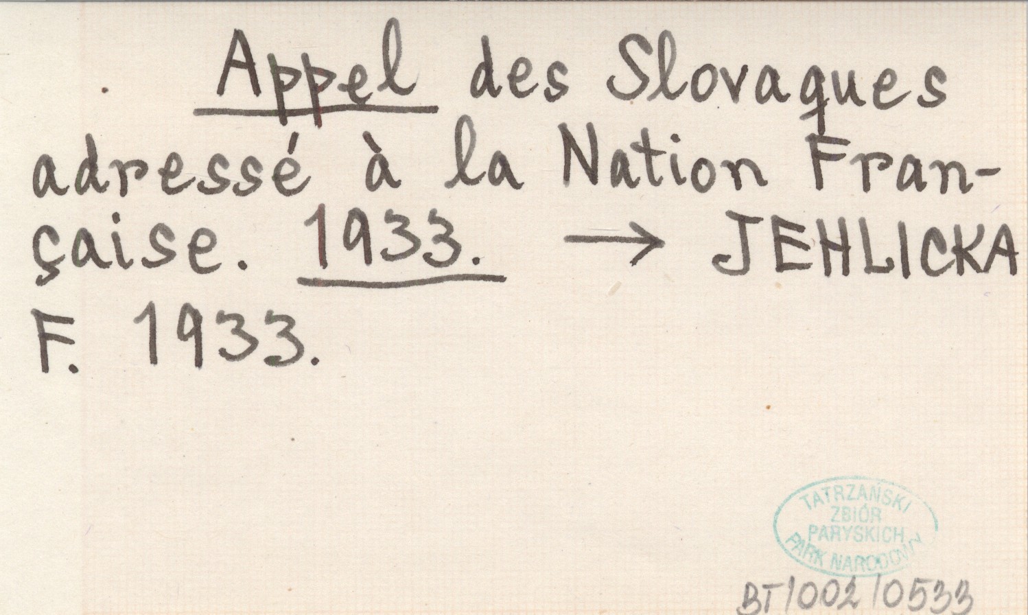 JEHLICKA F. 1933