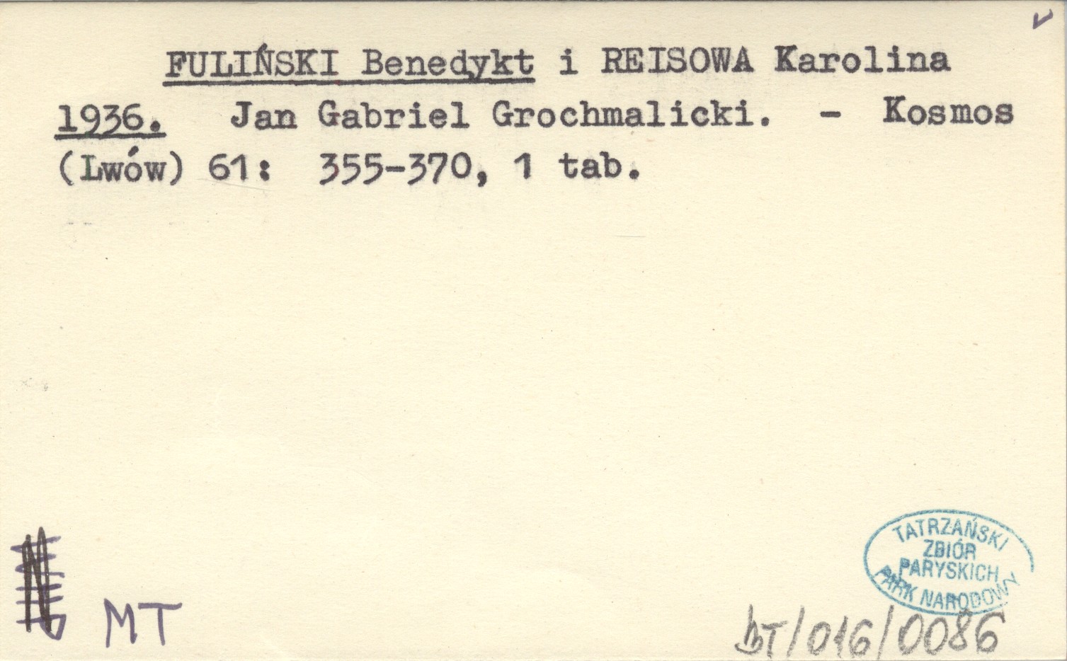 FULIŃSKI Benedykt REISOWA, Karolina. ; 1936 Jan Gabriel Grochmalicki.