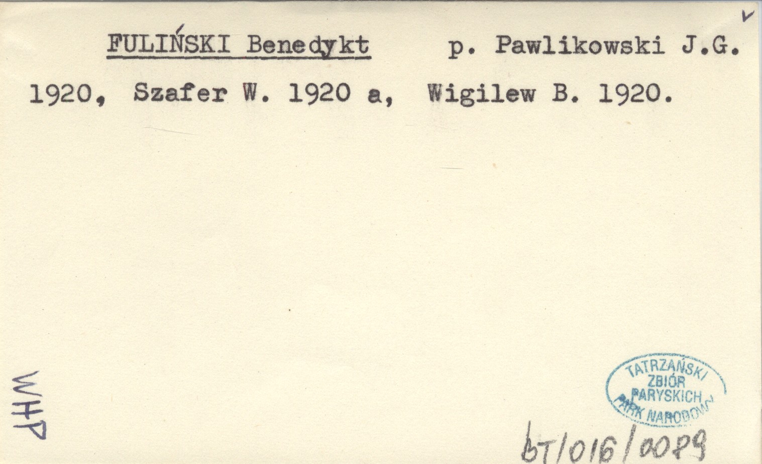 PAWLIKOWSKI J. G. 1920 SZAFER W. 1920 a WIGILEW B. 1920