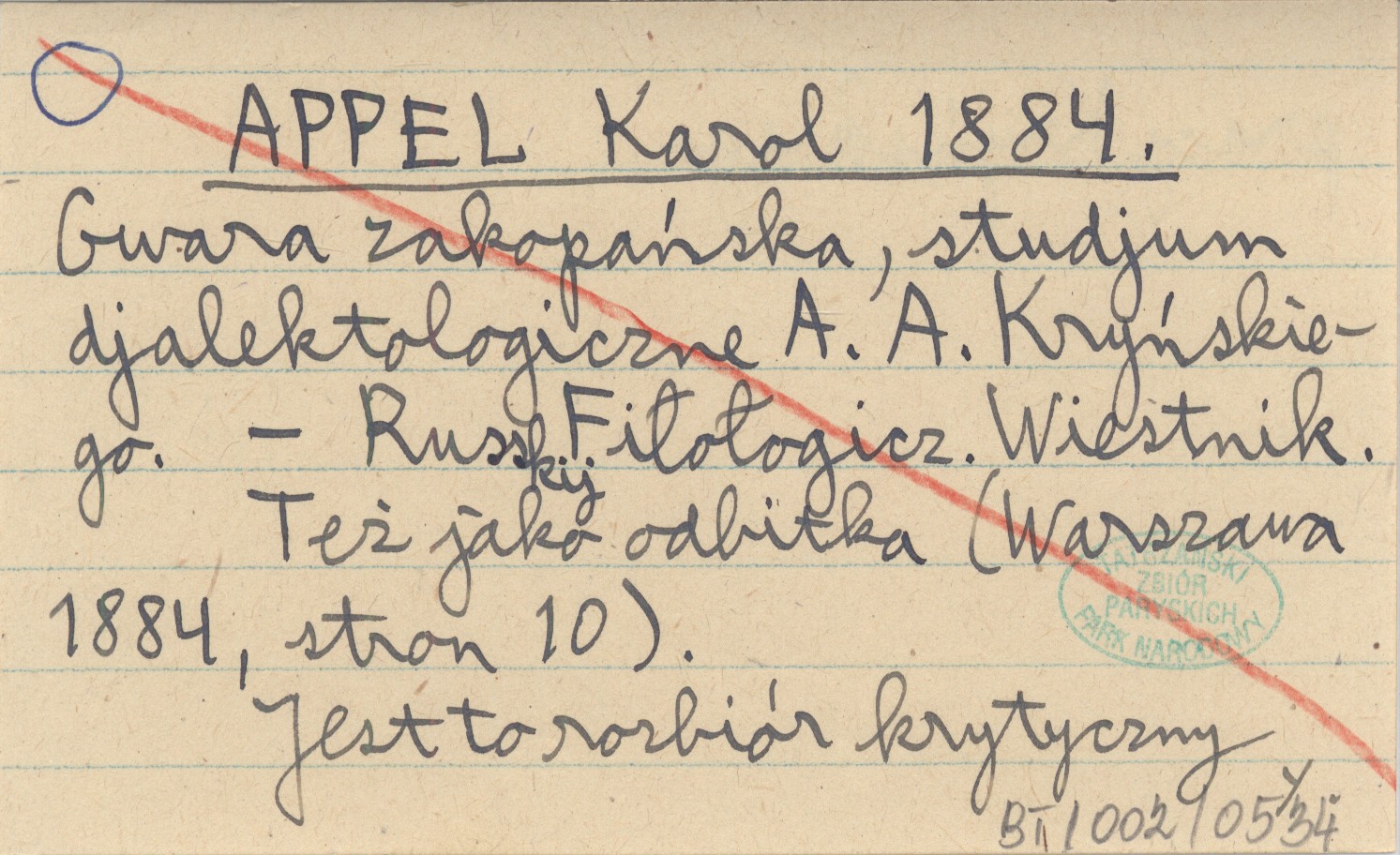 Russky Fiłołogicz. Wiestnik., Jest to rozbiór krytyczny pracy Kryńskiego. Też jako odbitka (Warszawa 1884, 10 s.).
