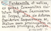 Fundamenta et motiva, ex quibus Communitas civitatum Regalium Saxonicarum de Scepus, alias sic dictorum Oppidorum suum provincialem in universis privilegiis, Juribus etc. Articulariter confirmari, ac collective quarto statui jure posliminii adnumerari suplicant. 1790