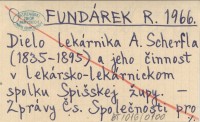 FUNDÁREK R. 1966 Dielo lekárnika A. Scherfla (1835-1895) a jeho činnost v lekársko-lekárnickom spolku Spišskej župy.