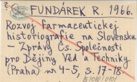 FUNDÁREK R. 1966 Rozvoj farmaceutickej historiografie na Slovensku.