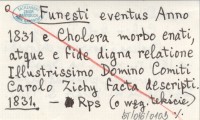 Funesti eventus Anno 1831 e Cholera morbo enati, atque e fide digna relatione Illustrissimo Domino Comiti Carolo Zichy facta descripti. 1831