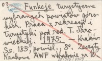 Funkcje turystyczne wybranych powiatów górskich. Praca z rekreacji i turystyki pod red. T. Jarowieckiej. 1975