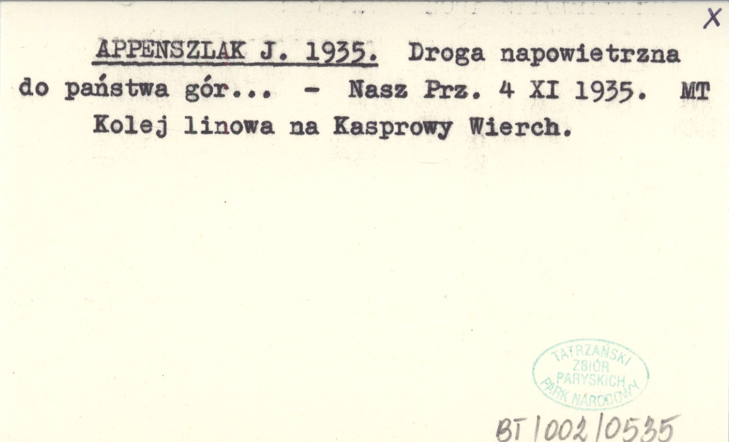 APPENSZLAK J. 1935 Droga napowietrzna do państwa gór ...