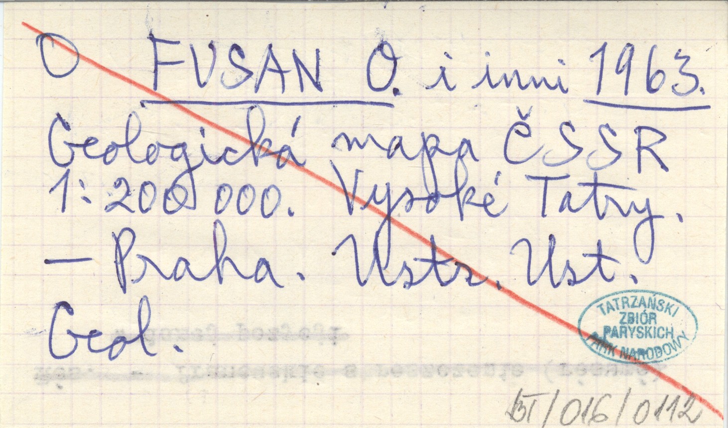 FUSAN O. i inni ; 1963 Geologická mapa ČSSR 1:200 000. Vysoké Tatry.