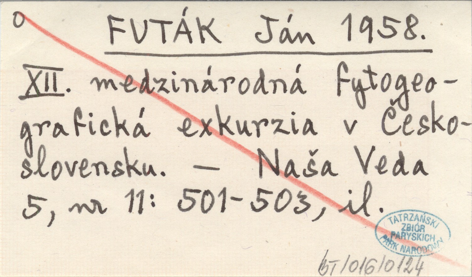 FUTÁK Ján 1958 XII. medzinárodná fytogeografická exkurzia v Československu.