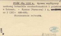 FUTÁK Ján 1956 a Sprawa współpracy naukowej botaników czechosłowackich i polskich w Tatrach.