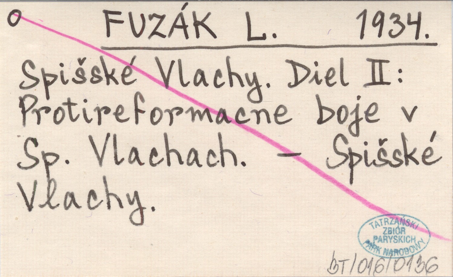 FUZÁK L. 1934 Spišské Vlachy. Diel II: Protireformacne boje v Sp. Vlachach.