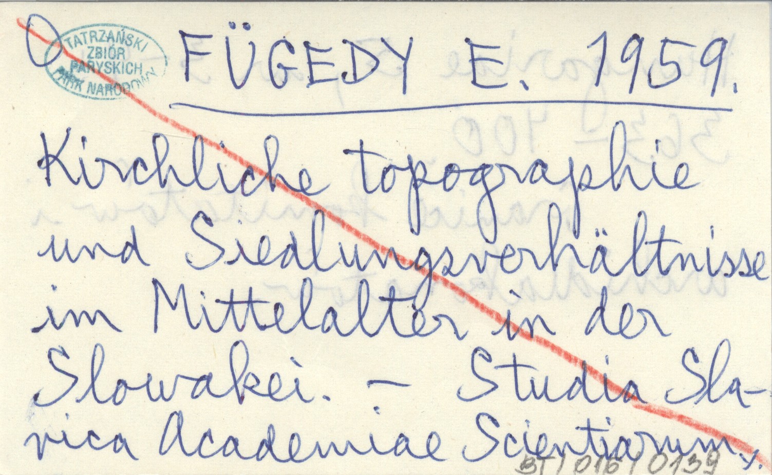 FÜGEDY E. 1959 Kirchliche topographie und Siedlungsverhältnisse im Mittelalter in der Slowakei.