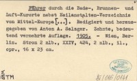 Führer durch die Bade-, Brunnen- und Luft-Kurorte nebst Heilanstalten-Verzeichnis von Mittel-Europa [...]. Redigiert und herausgegeben von Anton A. Salzger. Zehnte, bedeutend vermehrte Auflage. 1905