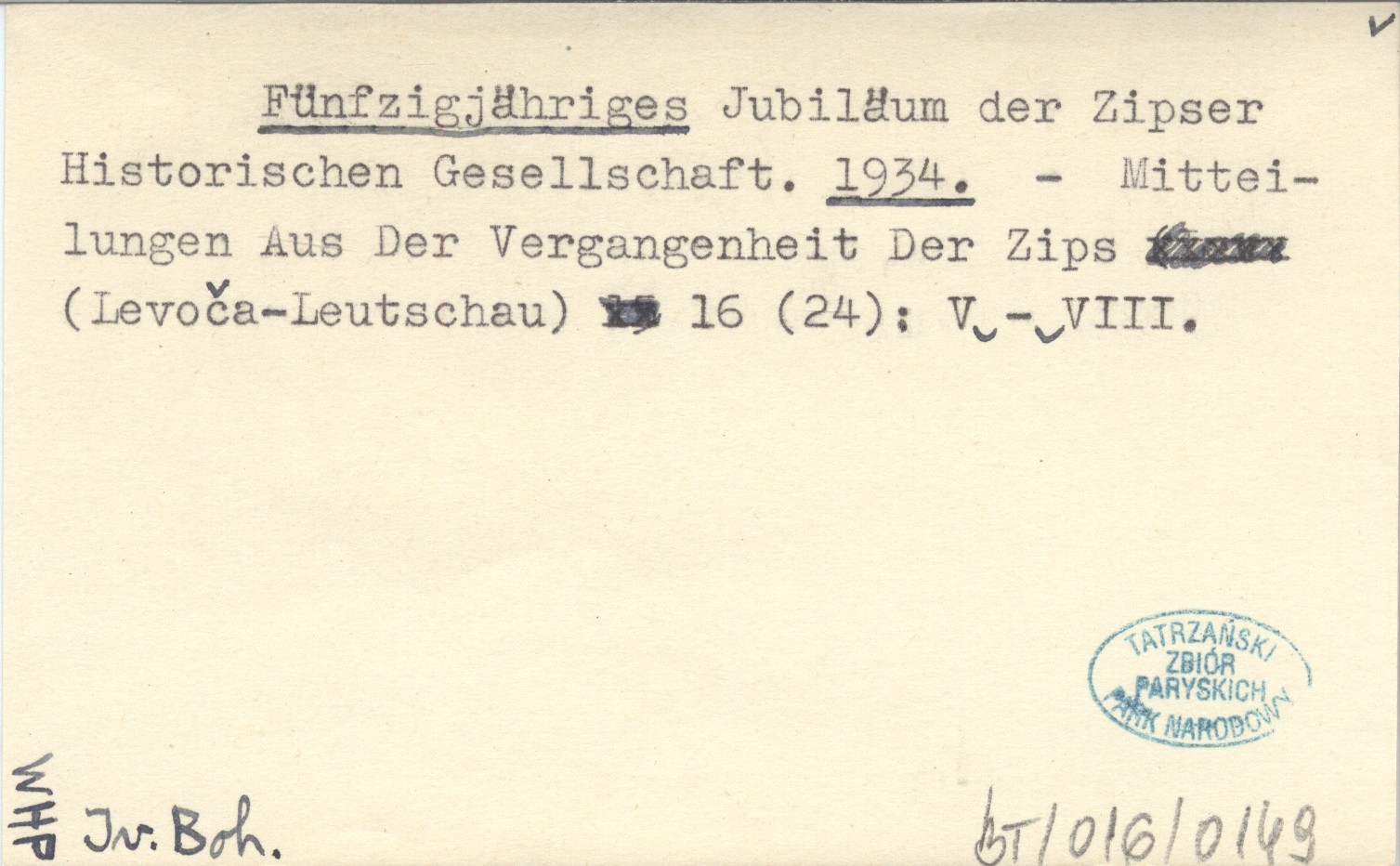 Fünfzigjähriges Jubiläum der Zipser Historischen Gesellschaft. 1934