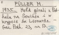 FÜLLER M. 1935... Ho³d górali z Podhala na Sowiñcu i w krypcie ¶w. Leonarda.
