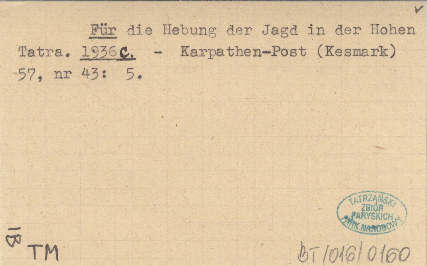 Für die Hebung der Jagd in der Hohen Tatra. 1936 c