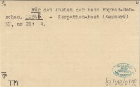 Für den Ausbau der Bahn Poprad-Dobschau. 1936 b