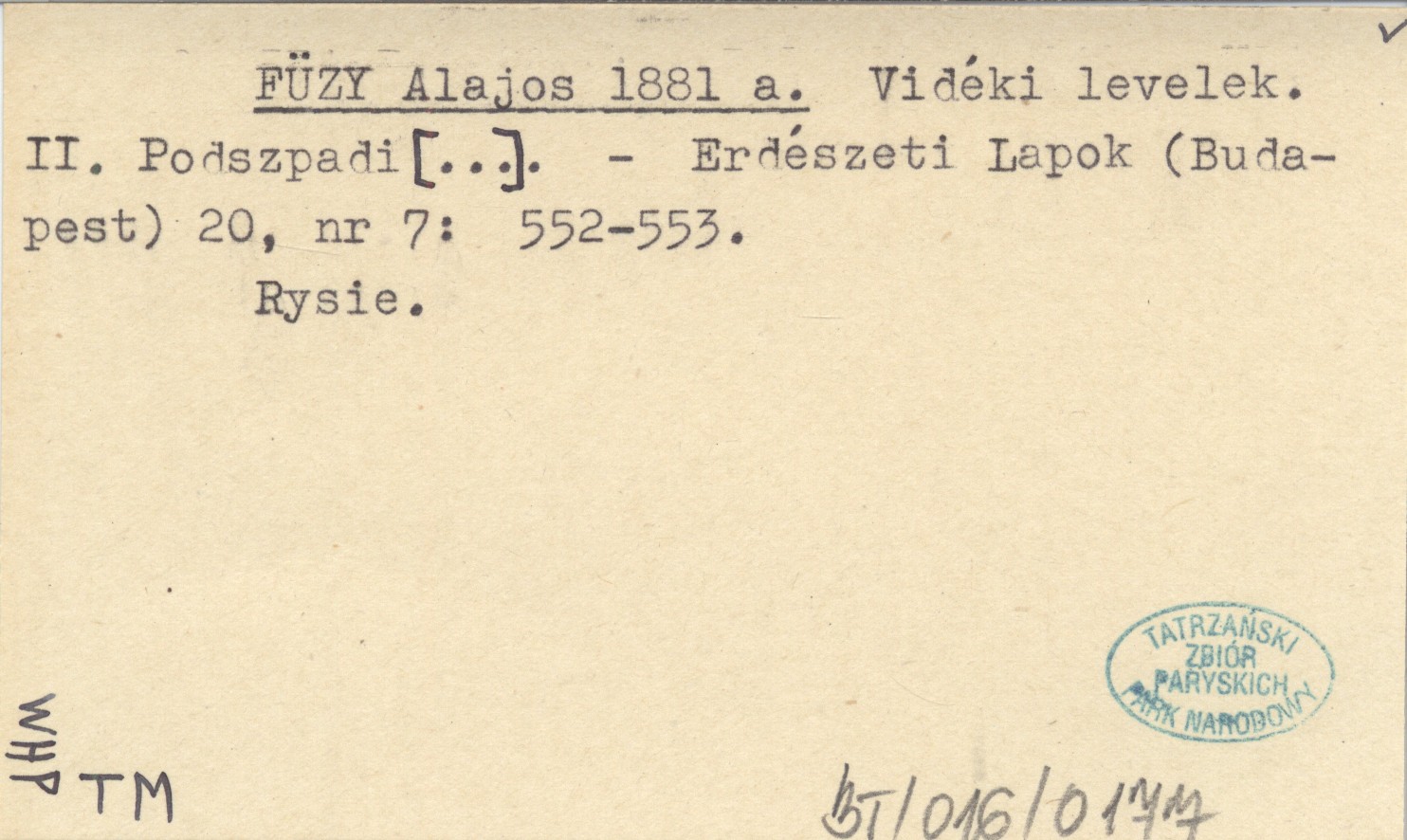 FÜZY Alajos 1881 a Vidéki levelek. II. Podszpadi [...].