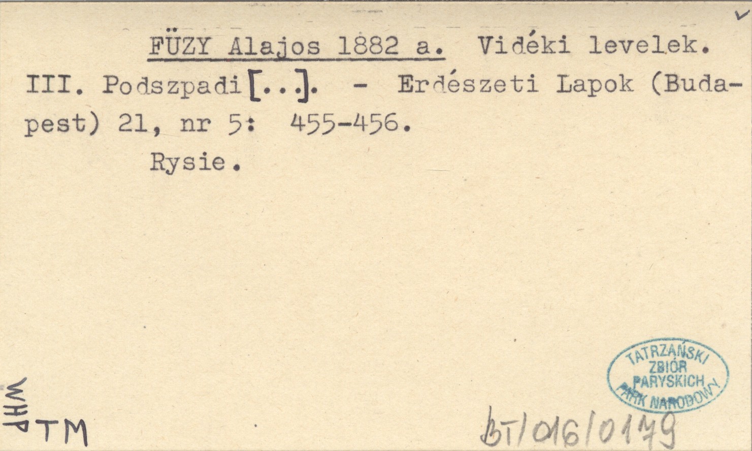 FÜZY Alajos 1882 a Vidéki levelek. III. Podszpadi [...].