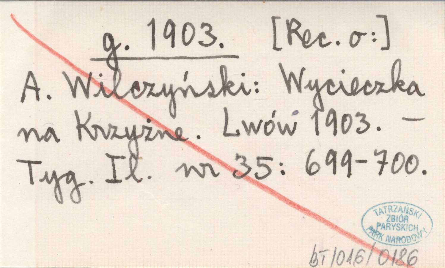 g. 1903 [Rec. o:] A. Wilczyński: Wycieczka na Krzyżne. Lwów 1903.