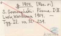 g. 1904 [Rec. o:] S. Goszczyński: Pisma. I-II. Lwów, Warszawa 1904.