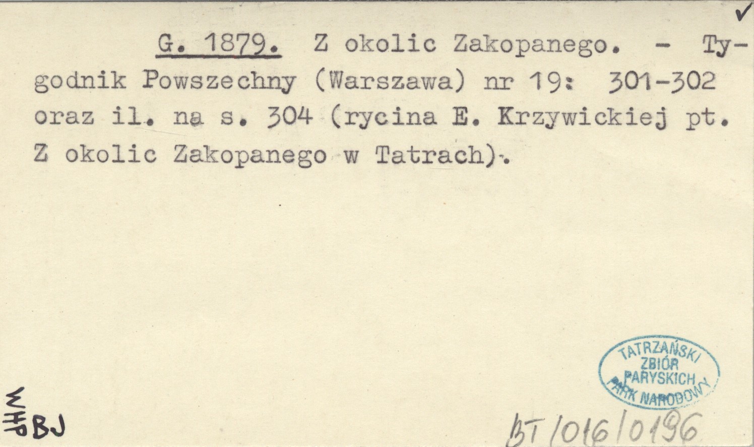 Tygodnik Powszechny (Warszawa) , Nr 19: 301-302, il. na s. 304. rycina E. Krzywickiej pt. Z okolic Zakopanego w Tatrach. Zakopane jako letnisko.