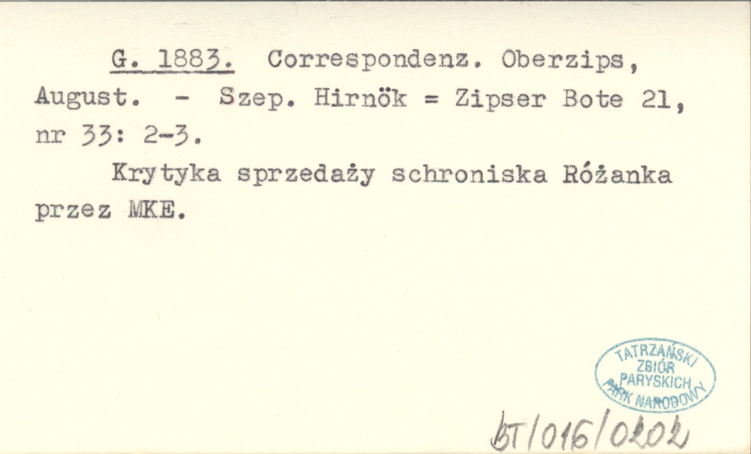 Szep. Hirnök = Zipser Bote, 21, nr 33: 2-3. Krytyka sprzedaży schroniska Różanka przez MKE.