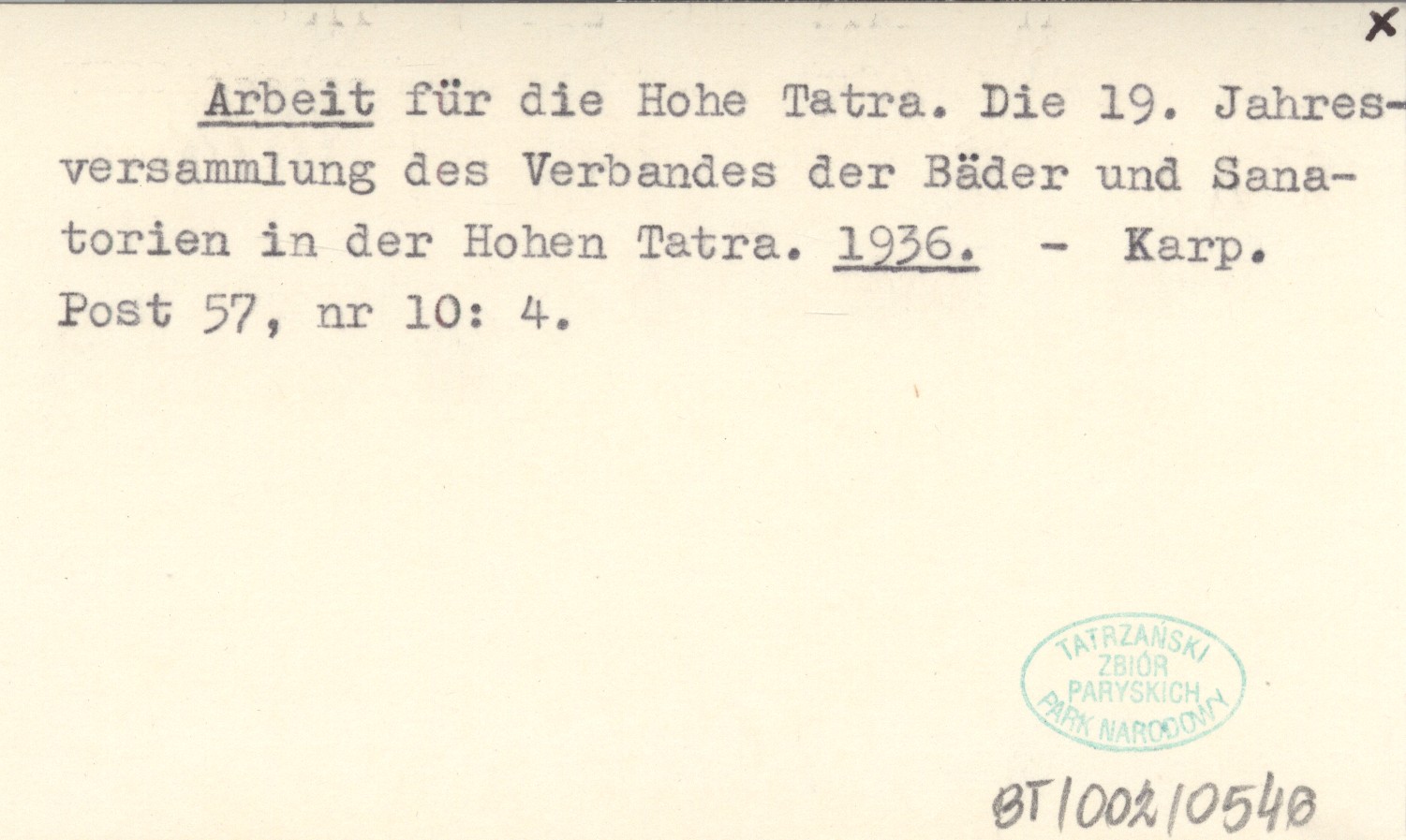 Arbeit für die Hohe Tatra. Die 19. Jahresversammlung des Verbandes der Bäder und Sanatorien in der Hohen Tatra. 1936