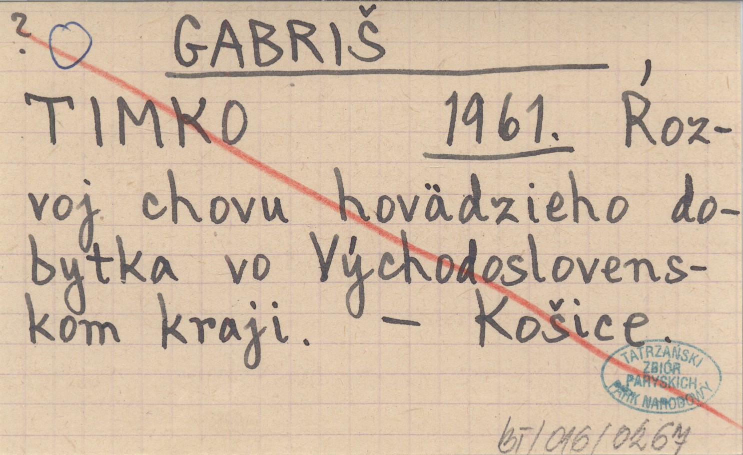 GABRIŠ TIMKO ; 1961 Rozvoj chovu hovädzieho dobytka vo Východoslovenskom kraji.