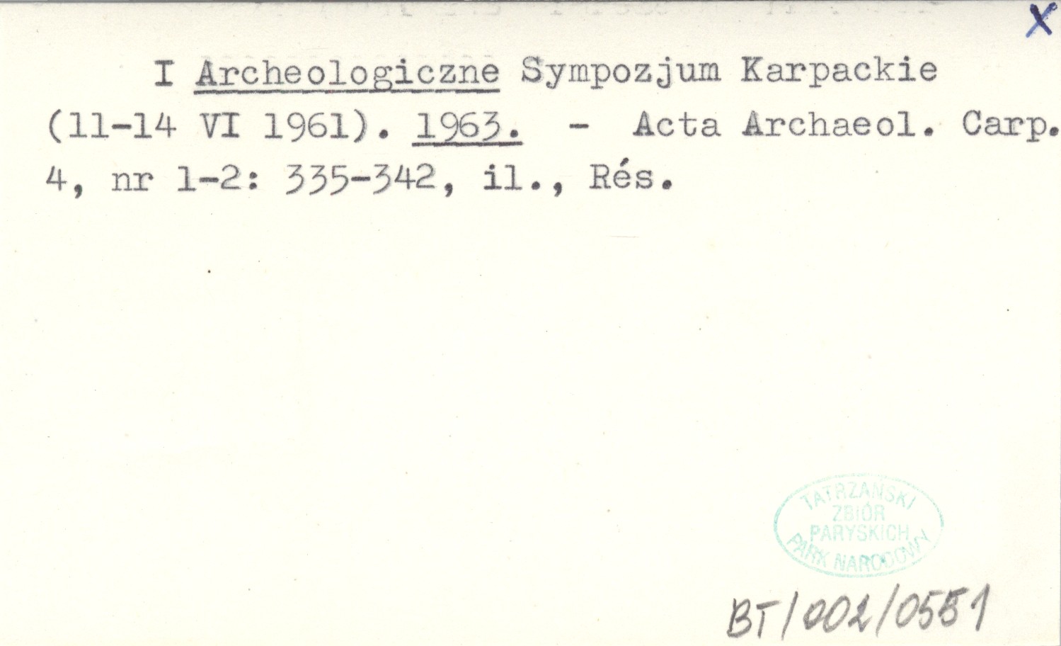I Archeologiczne Sympozjum Karpackie (11-14 VI 1961). 1963