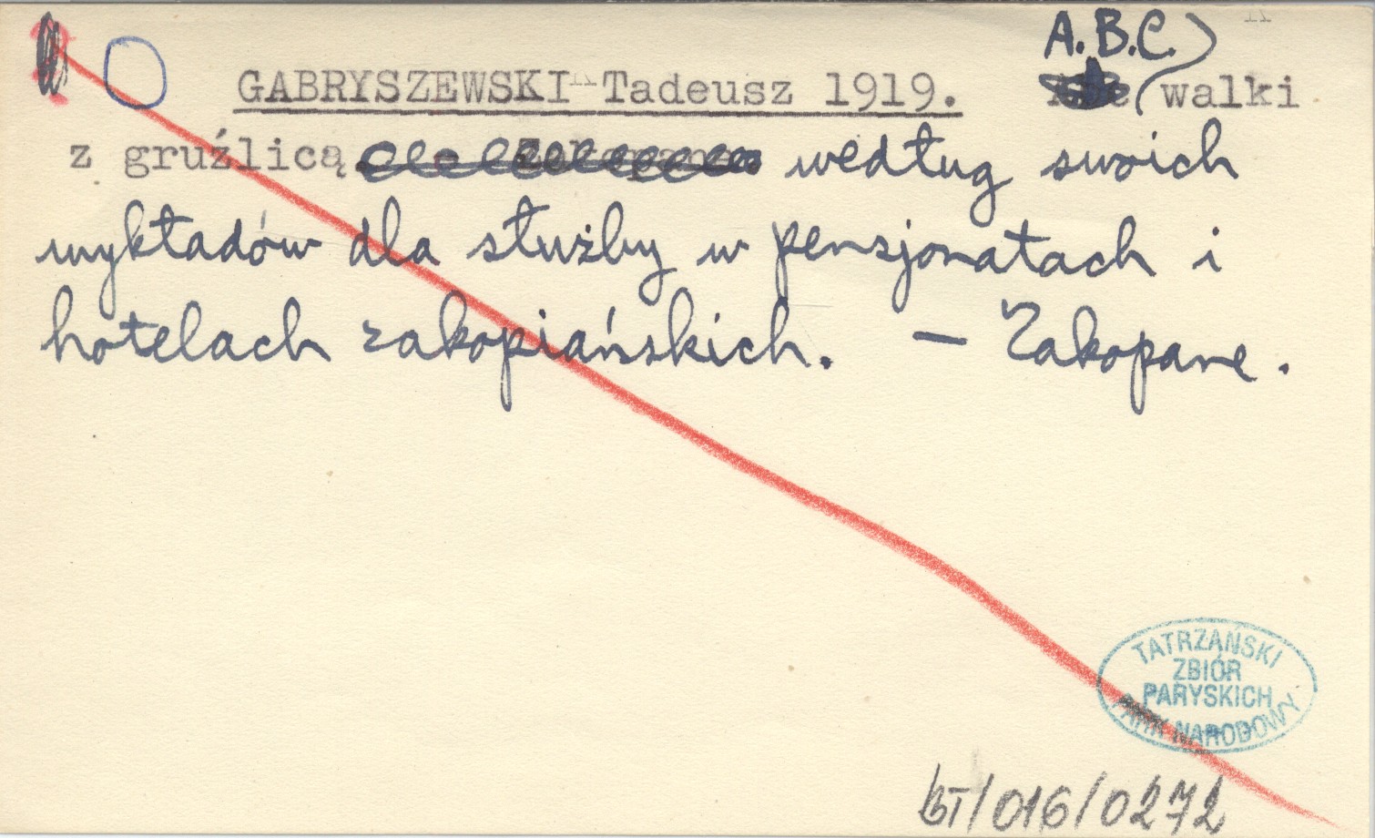 GABRYSZEWSKI Tadeusz 1919 A.B.C. walki z gruźlicą według swoich wykładów dla służby w pensjonatach i hotelach zakopiańskich.
