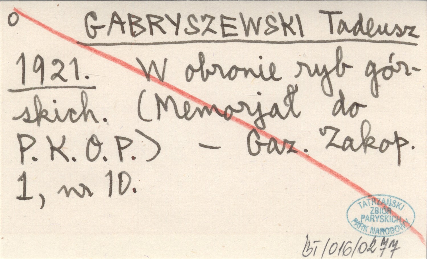GABRYSZEWSKI Tadeusz 1921 W obronie ryb górskich. (Memorjał do P.K.O.P.).