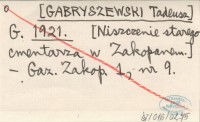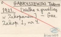 G. [GABRYSZEWSKI Tadeusz] 1921 [Niszczenie starego cmentarza w Zakopanem.].