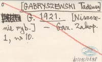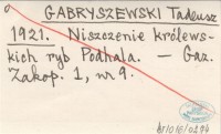 G. [GABRYSZEWSKI Tadeusz] 1921 [Niszczenie ryb.].