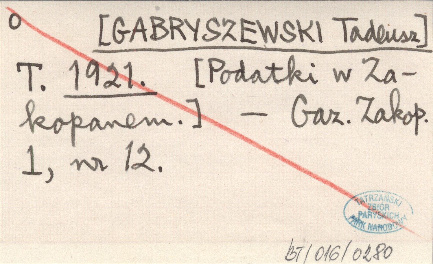 T. [GABRYSZEWSKI Tadeusz] 1921 [Podatki w Zakopanem.].