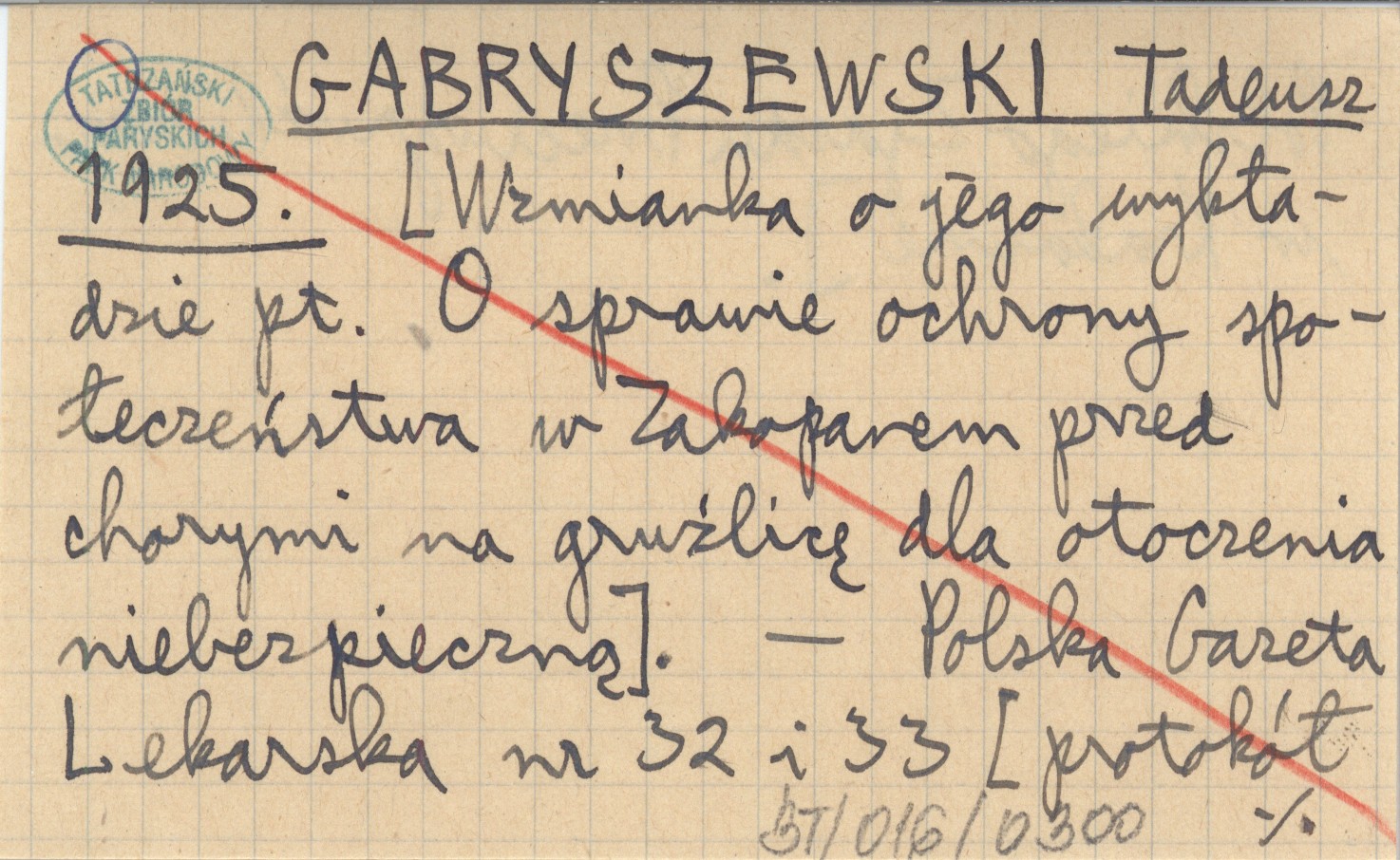 GABRYSZEWSKI Tadeusz 1925 [Wzmianka o jego wykładzie pt. O sprawie ochrony społeczeństwa w Zakopanem przed chorymi na gruźlicę dla otoczenia niebezpieczną].